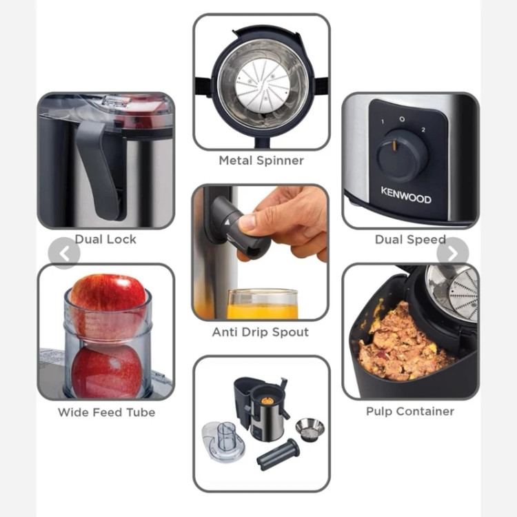 مشخصات آبمیوه گیری کنوود مدل JEM51 تنظیم سرعت 2 حالته جنس بدنه استیل وپلاستیک توانایی آبگیری انواع میوهها و سبزیجات در مدت زمان کم و با حداقل صدا سیستم قفل ایمنی هوشمند قابلیت شست و شوی قطعات در ماشین ظرفشویی مجهز به سیستم ضد چکه دارای موتور قدرتمند 700 واتی دارای پایه ضد لغزش موجود در رنگ سفید