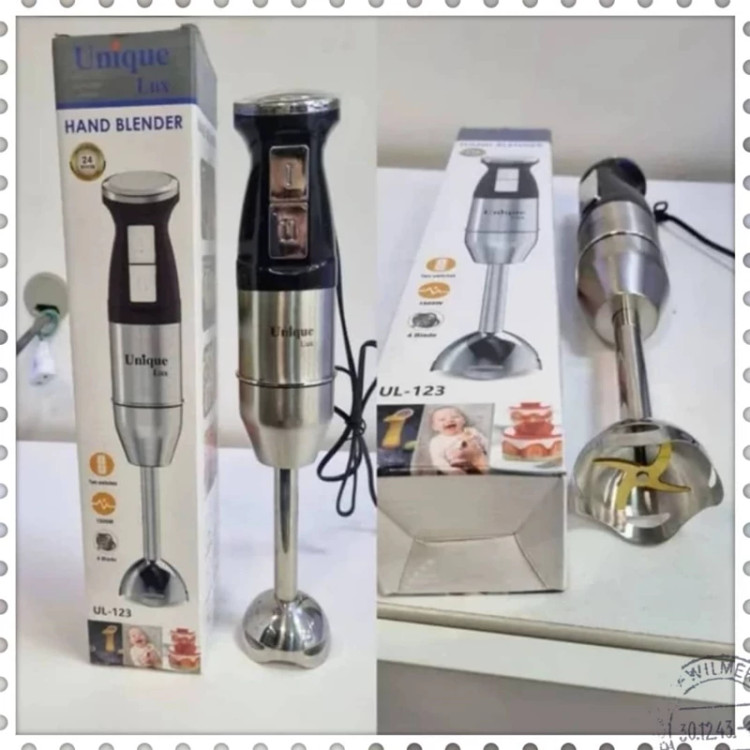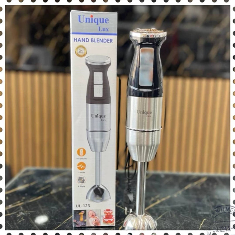 گوشکوب برقی تککاره Unique Lux مدل UL‑123 بدنه تمام استیل ضد زنگ 2 موتوره قابلیت تنظیم سرعت 4 تیغه طلایی از جنس فولاد توان مصرفی : 1500 وات ویژگیها: بدنه: تمام استیل ضد زنگ – مقاوم، بادوام و شیک موتور: دو موتوره قدرتمند توان: 1500 وات – عملکرد سریع و پرقدرت سرعت: قابلیت تنظیم سرعت برای کنترل بهتر روی بافت مواد تیغهها: 4 عدد تیغه طلایی از فولاد ضد زنگ با برش دقیق کاربرد: مناسب برای پورهکردن، خردکردن، میکسکردن و تهیه انواع سس و سوپ طراحی ارگونومیک: دسته ضدلغزش برای استفاده راحت مدل: UL‑123 – محصولی حرفهای برای آشپزخانههای مدرن مناسب برای: خانگی و نیمهحرفهای ساخت : چین