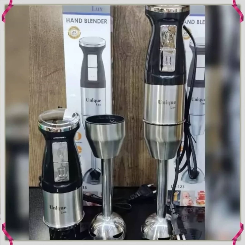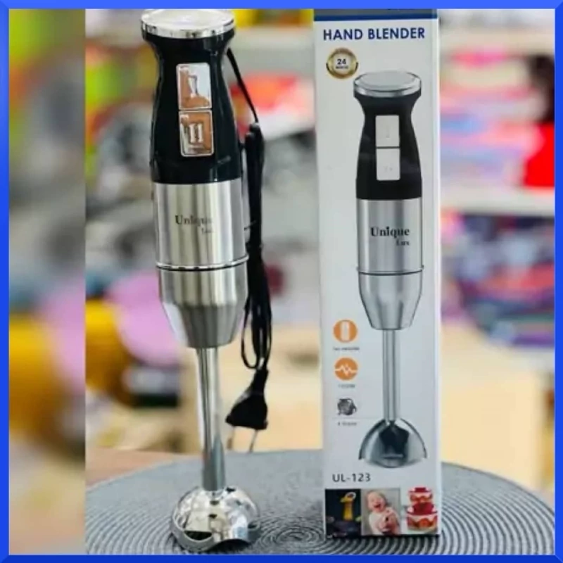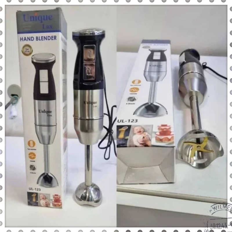 گوشکوب برقی تککاره Unique Lux مدل UL‑123 بدنه تمام استیل ضد زنگ 2 موتوره قابلیت تنظیم سرعت 4 تیغه طلایی از جنس فولاد توان مصرفی : 1500 وات ویژگیها: بدنه: تمام استیل ضد زنگ – مقاوم، بادوام و شیک موتور: دو موتوره قدرتمند توان: 1500 وات – عملکرد سریع و پرقدرت سرعت: قابلیت تنظیم سرعت برای کنترل بهتر روی بافت مواد تیغهها: 4 عدد تیغه طلایی از فولاد ضد زنگ با برش دقیق کاربرد: مناسب برای پورهکردن، خردکردن، میکسکردن و تهیه انواع سس و سوپ طراحی ارگونومیک: دسته ضدلغزش برای استفاده راحت مدل: UL‑123 – محصولی حرفهای برای آشپزخانههای مدرن مناسب برای: خانگی و نیمهحرفهای ساخت : چین